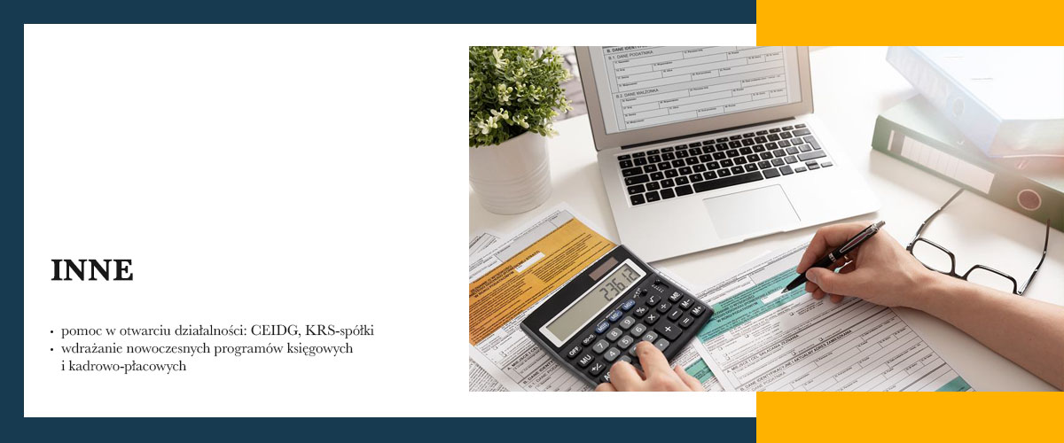 Oferujemy współpracę na profesjonalnym poziomie. W trosce o dobro klienta stale doskonalimy naszą wiedzę, co pozwala dotrzymać nam kroku często zmieniającym się przepisom. Jednym słowem “jesteśmy na bieżąco”.